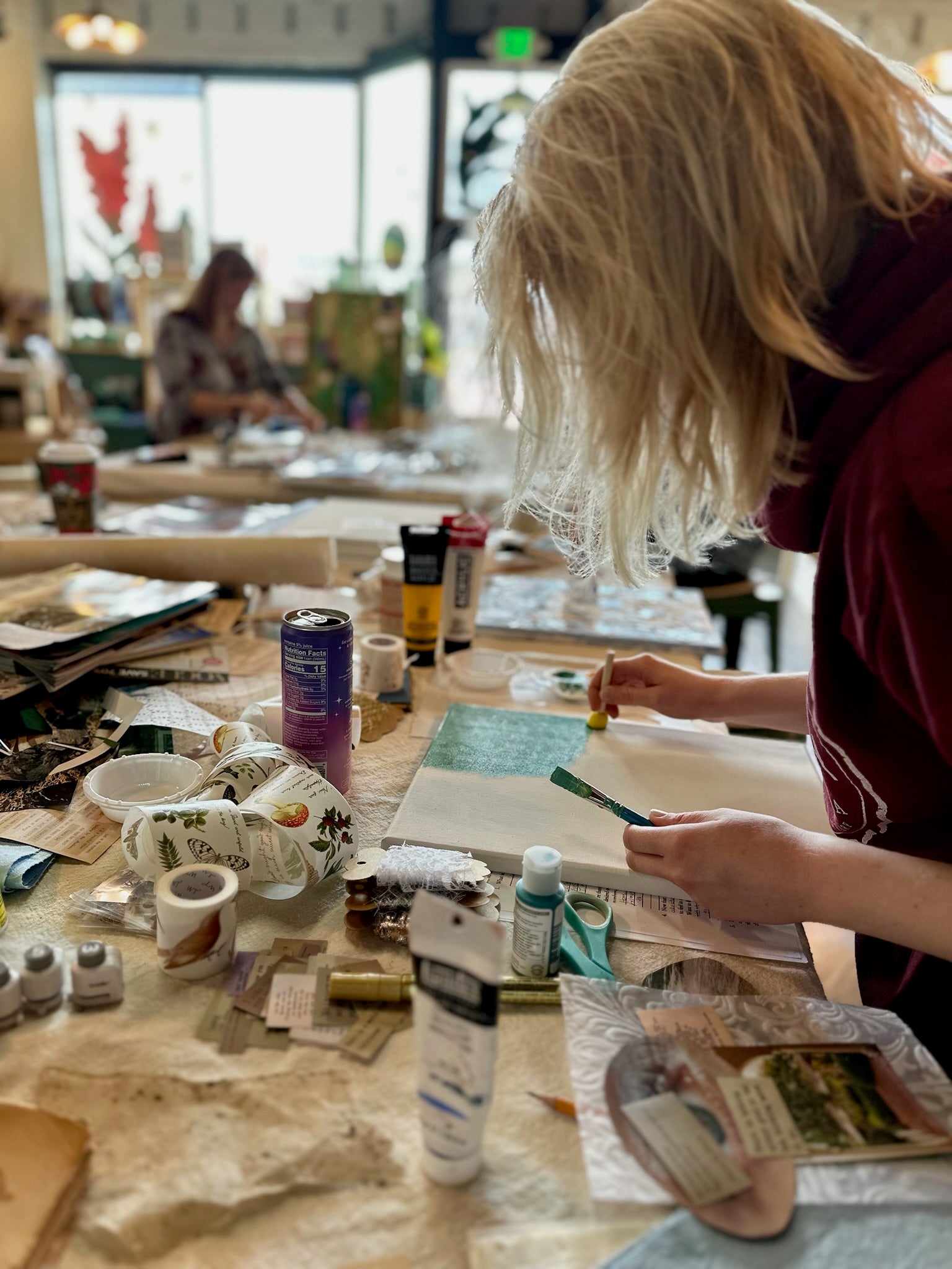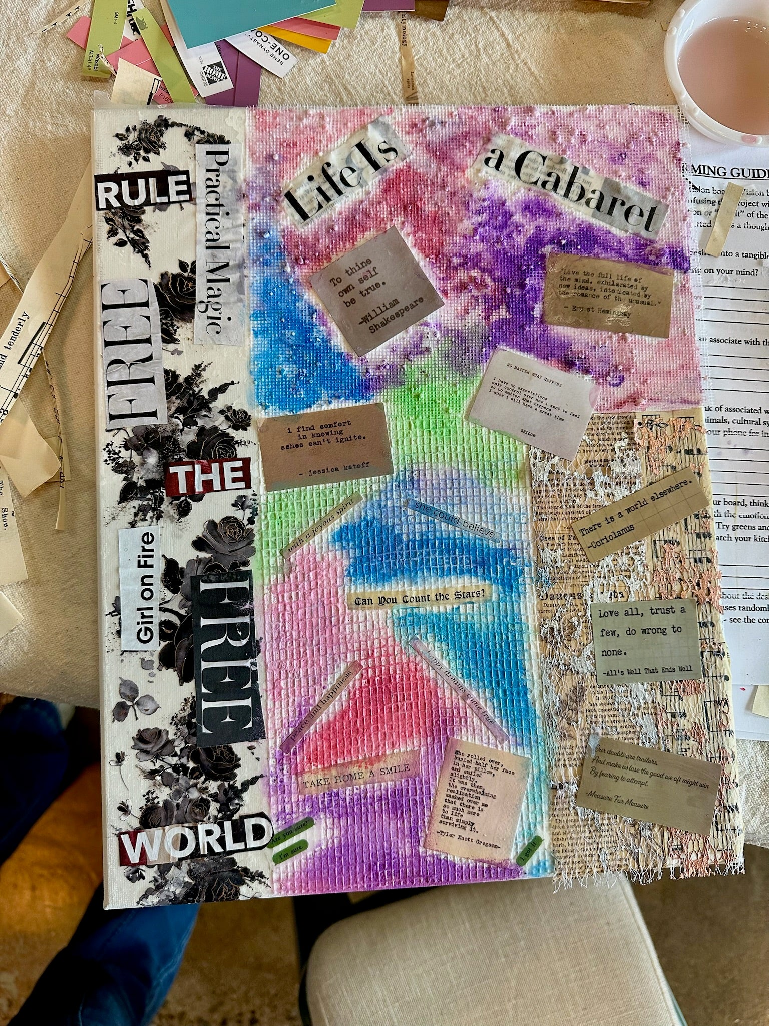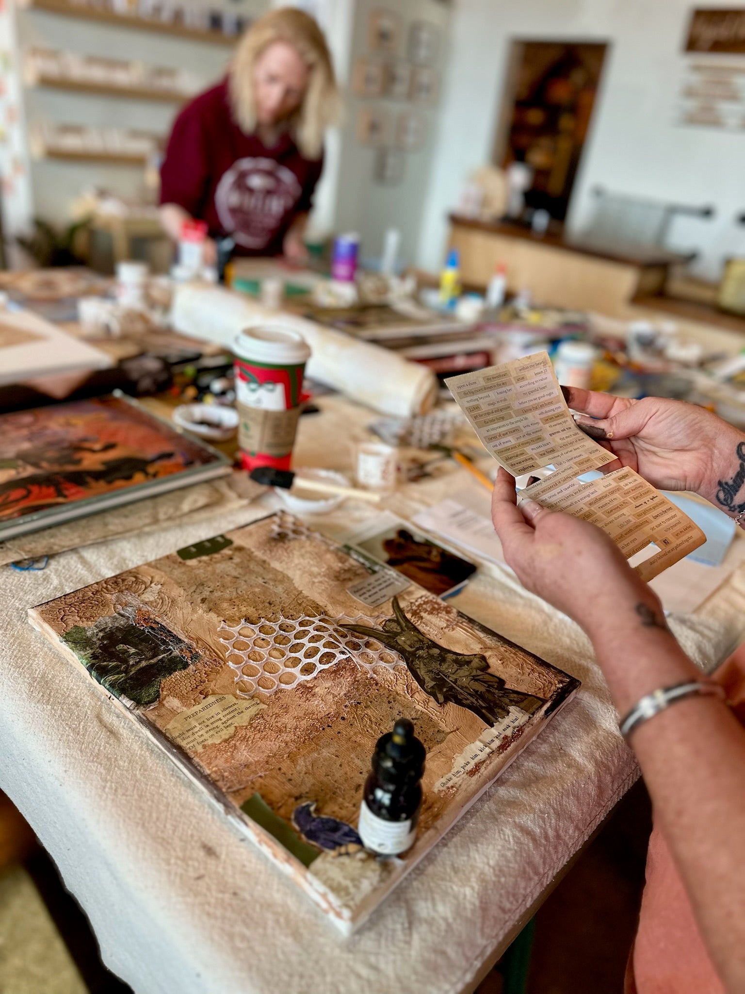 During the workshop, you'll start by personalizing a pre-treated, textured canvas with your choice of painting or staining. Then, delve into an array of high-quality art materials like water slide decals, metallic inks, gold leaf, and more, elevating your vision board to a work of art that resonates with your aspirations.