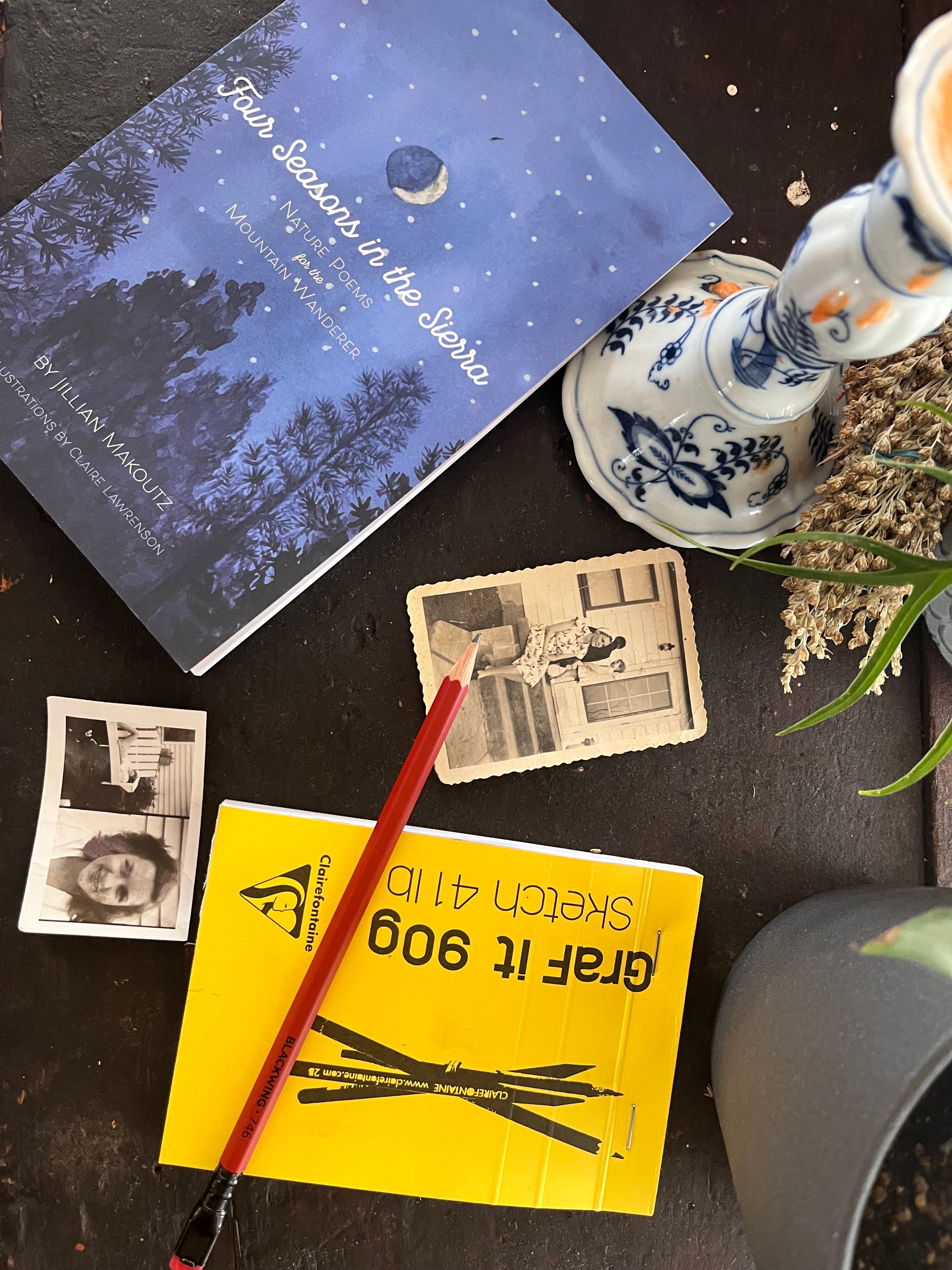 All materials are provided, including a journal and blackwing pencil for all your writing needs, so just plan to bring yourself, a momento (if you'd like!), and maybe some kleenex. You'll also receive a signed copy of Jillian Makoutz's book, Four Seasons in the Sierra.