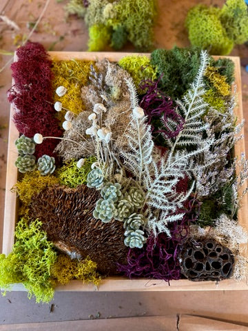 Make your own version of MonkeyCat Studios stunning moss walls, as Liz shares her craft! In this two-hour beginner-friendly class, you'll create your own framed moss garden using preserved mosses, dried botanicals, and other natural materials.