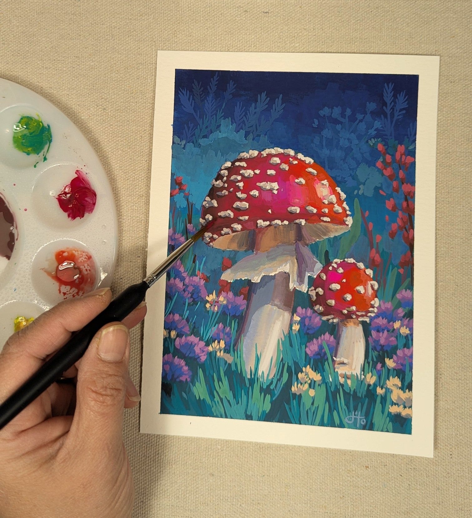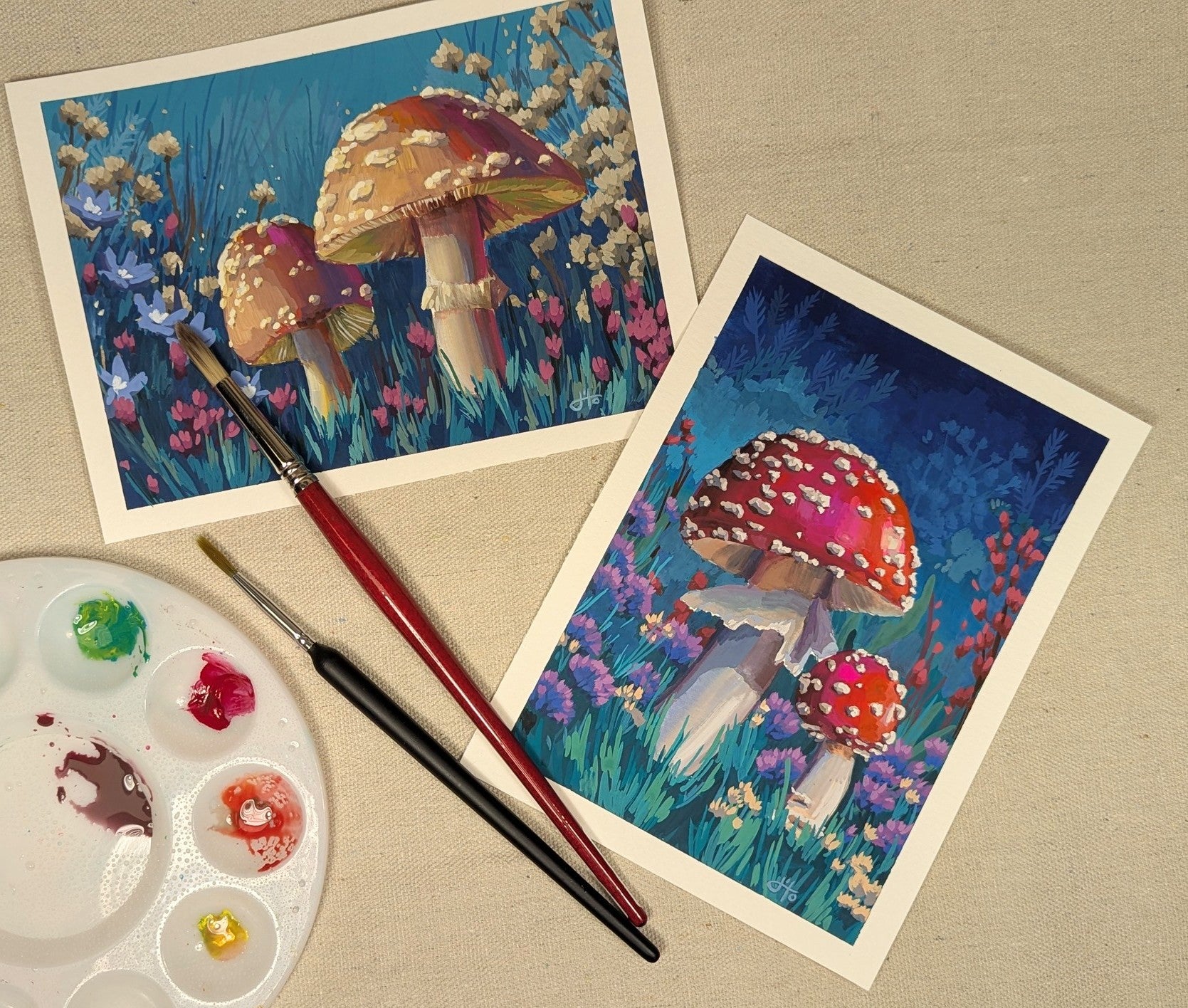 We will paint charming portraits of mushrooms using gouache paint, an opaque form of watercolor paint.  Color mixing and shape application will be guided step-by-step through the whole painting so all levels of experience are welcome.